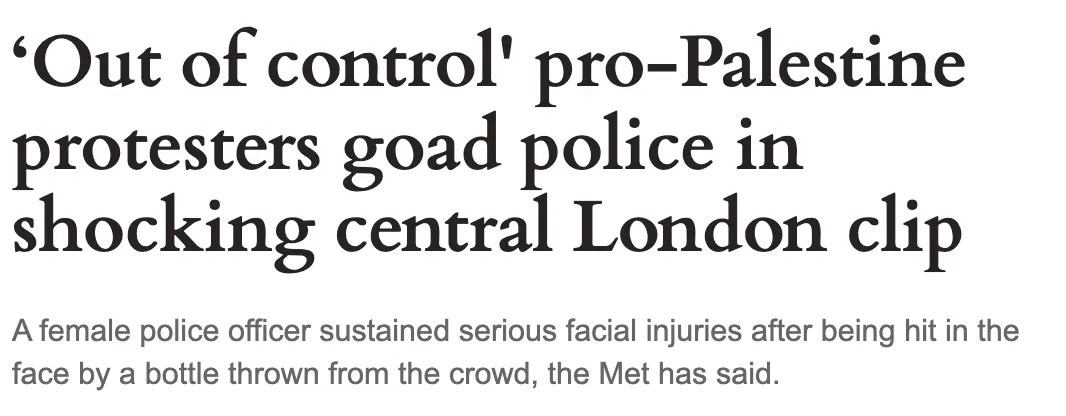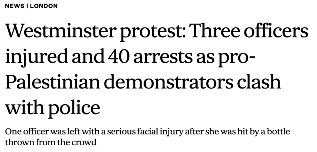 《旗幟晚報》:威斯敏斯特抗議活動,親巴勒斯坦示威者與警方發生衝突。