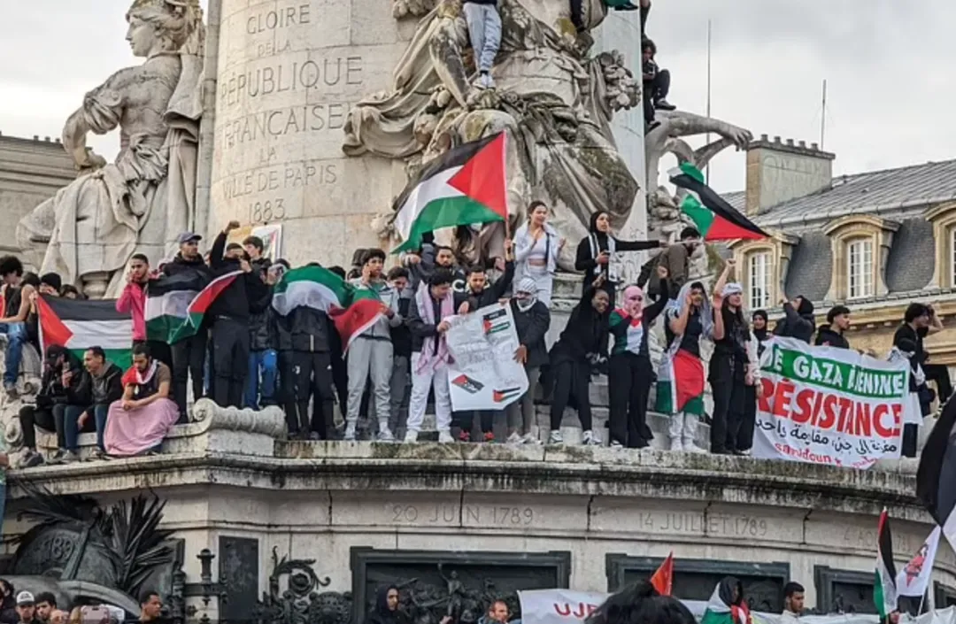 在巴黎,數千人聚集在共和國廣場,揮舞着巴勒斯坦國旗,高呼着口號。