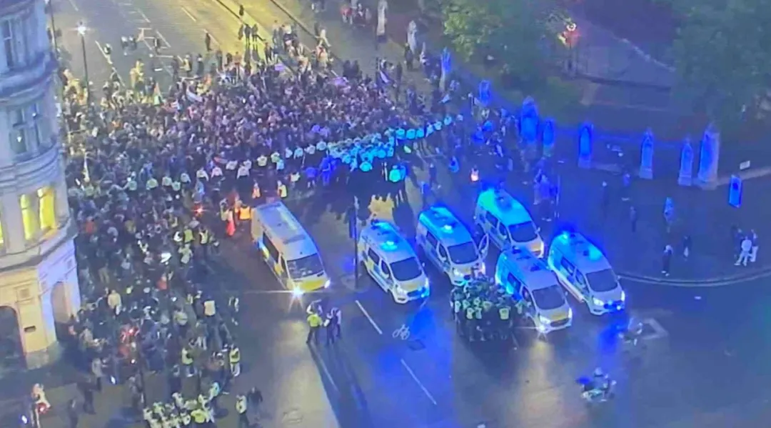 英媒稱,根據《公共秩序法》抗議活動被要求在晚上8點結束,絕大多數抗議者在規定時間內離開了現場,但仍有約500人留下繼續抗議。