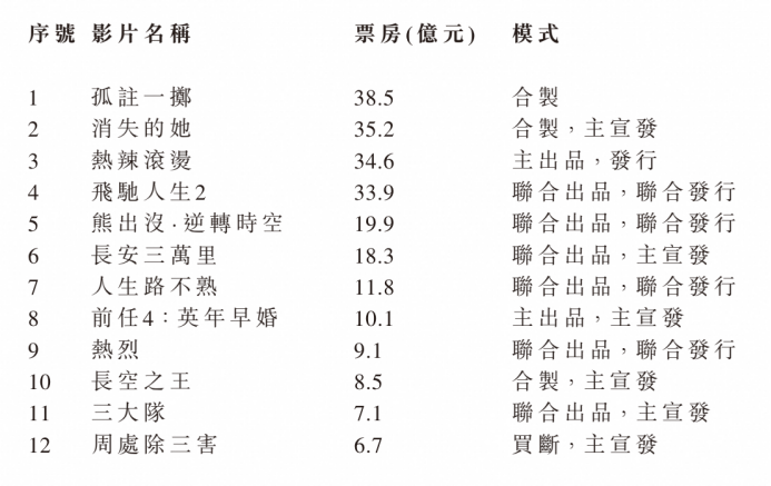 在電影投資製作及宣發方面,阿里影業一方面通過獲取更多投資與主宣發項目儲備,以覆蓋重要檔期和頭部項目,保證基礎收益率;另一方面,積極拓展合制與自制能力,逐漸形成廠牌影響力,從而形成具有高爆發力的高收益電影投資組合,進一步提高內容投資業務的利潤率。報告期內,阿里影業共參與出品、發行影片超60部(其中主宣發項目近30部、自制及合制項目6部),其中《孤注一擲》、《消失的她》、《熱辣滾燙》、《飛馳人生2》、《熊出沒·逆轉時空》、《長安三萬裏》等十五部影片進入同期票房前20,累計票房佔總票房超60%。