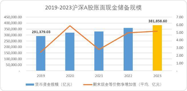 2023年滬深全A的資產結構中,有一項指標格外突出,那便是貨幣資金。38億以上的貨幣資金規模,佔整體的資本比例將近10%。