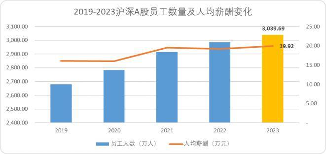 圖: A股員工數量及平均薪酬趨勢,來源:Choice金融客户端,錦緞整理