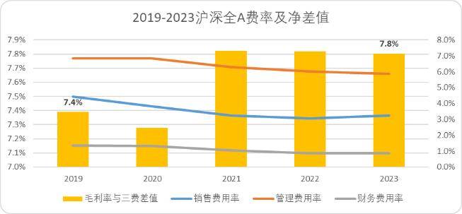 圖:滬深全 A費率及毛利淨差值趨勢,來源:Choice金融客户端,錦緞整理