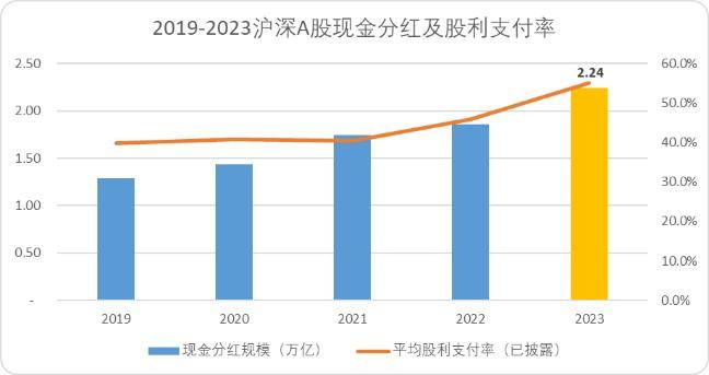 分紅也可以佐證這一觀點,根據上協會的數據,2023年A股整體現金分紅的規模達到了2.24億元,平均股利支付率也達到了五年最高的水平。