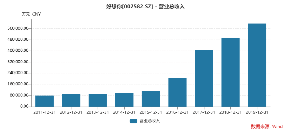 Wind數據顯示,2011-2019年,好想你的營業收入從7.85億元增至59.61億元,CAGR為28.84%;歸母淨利潤從1.13億元增至1.93億元,CAGR為6.92%;扣非歸母淨利潤從0.94億元跌至0.39億元,期間2015年和2016年是虧損狀態。
