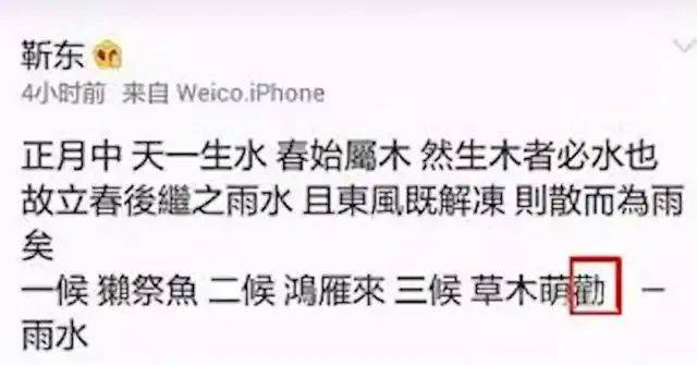 靳東一度被認為是“文化人”的代表。但是他發微博卻頻頻出現錯別字,硬拗讀書人設,最後翻車。