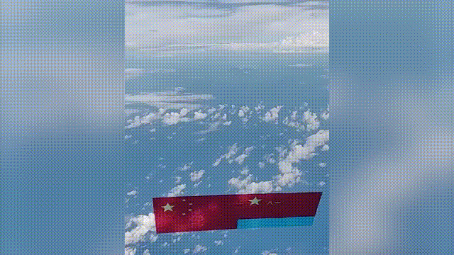 ▲ 2024年5月23日至24日,中國人民解放軍東部戰區組織戰區陸軍、海軍、空軍、火箭軍等兵力,位台島周邊開展“聯合利劍-2024A”演習。期間,環台島戰巡的飛行員拍下了這樣震撼人心的一幕,國旗軍旗與寶島中央山脈同框。