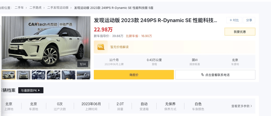 懂車帝上二手車同款路虎發現運動,二手車報價22.98萬