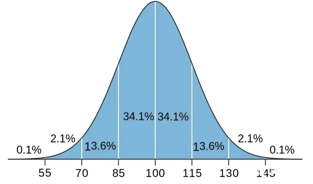 如果根據智商水平來重新衡量大學錄取率,會發現:正常人的智商範圍是85-115,68%的人都在這個範圍。