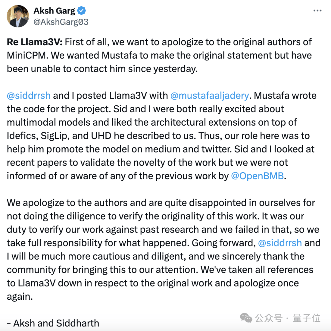 Llama3-V團隊承認抄襲,其中兩位來自斯坦福的本科生還跟另一位作者切割了。