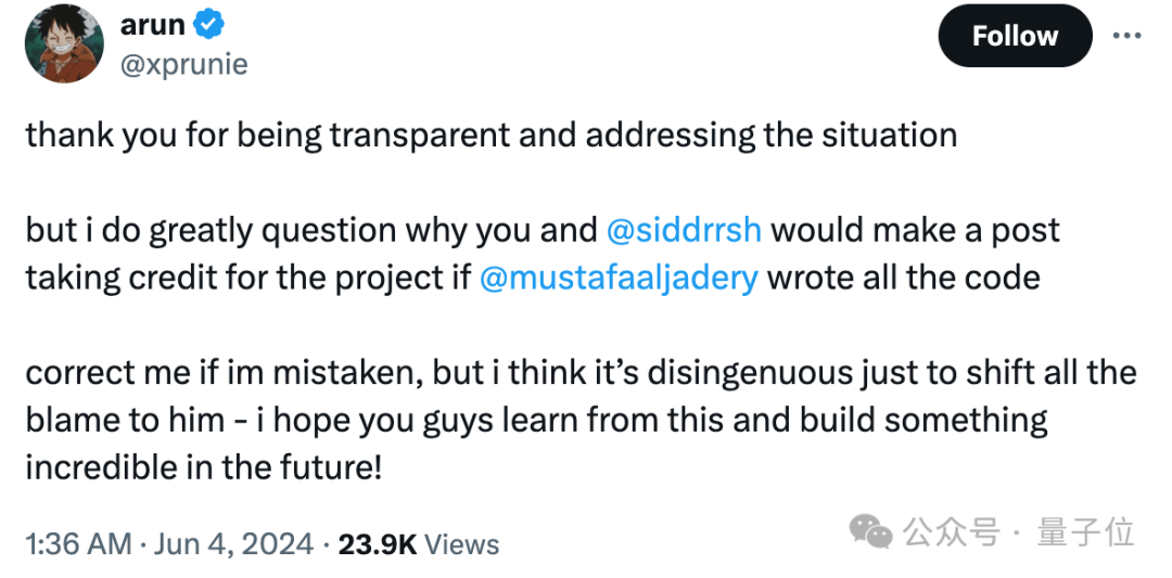 他認為團隊在事發後避重就輕,用“架構相似”、“MiniCPM比我們更快實現”的藉口推脱,拒不承認是抄襲。
