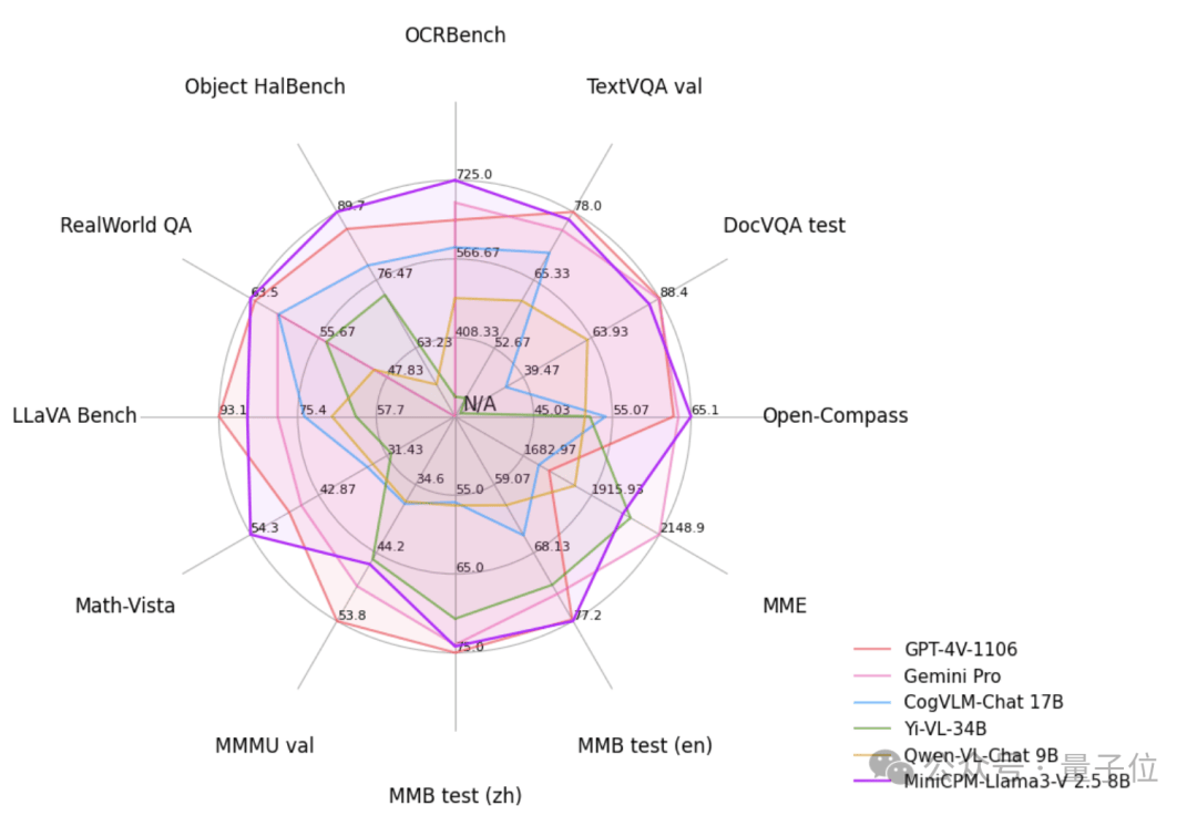 從性能上講,MiniCPM-Llama3-V 2.5在OpenCompass上取得了65.1的平均分,性能超過如GPT-4V-1106、Gemini Pro、Claude 3、Qwen-VL-Max等專有模型,且顯著超越其他基於Llama 3的多模態語言模型。