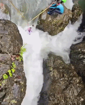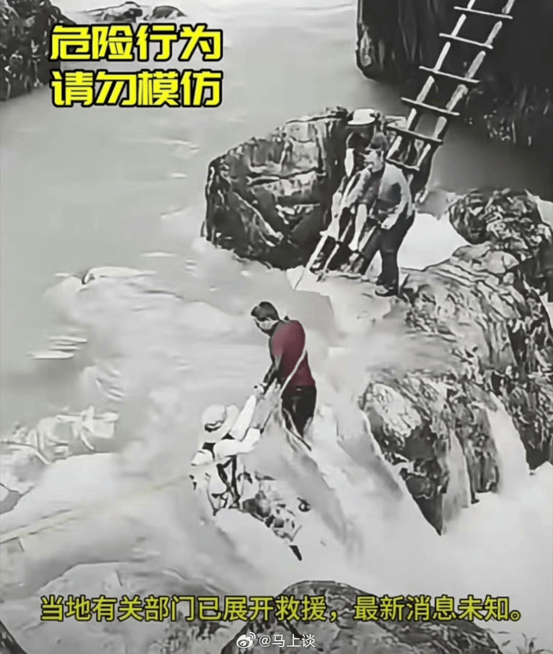 而旁邊的同行者面對激流也束手無策