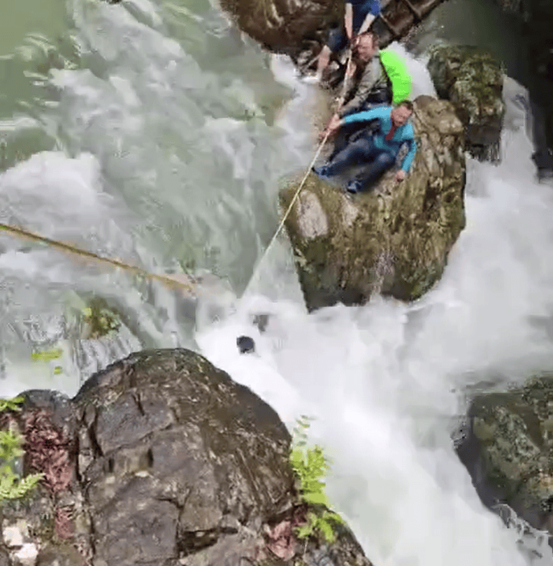兩名驢友在橫渡峽谷溪流時