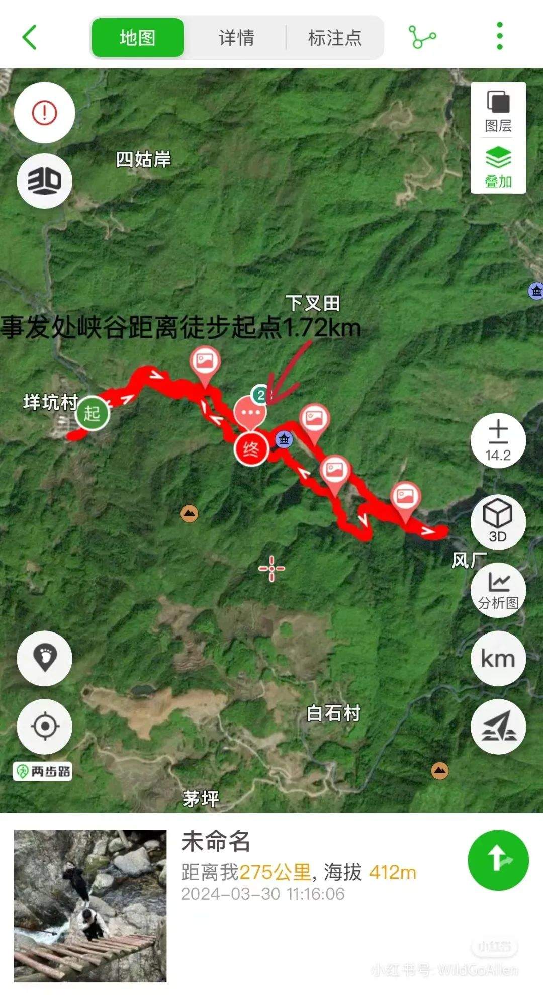 可以看到事發溪流位於兩座峽谷之間
