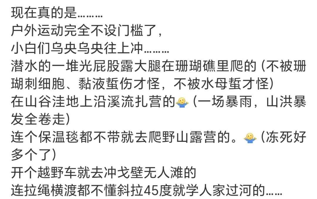 不少資深户外愛好者下場分析