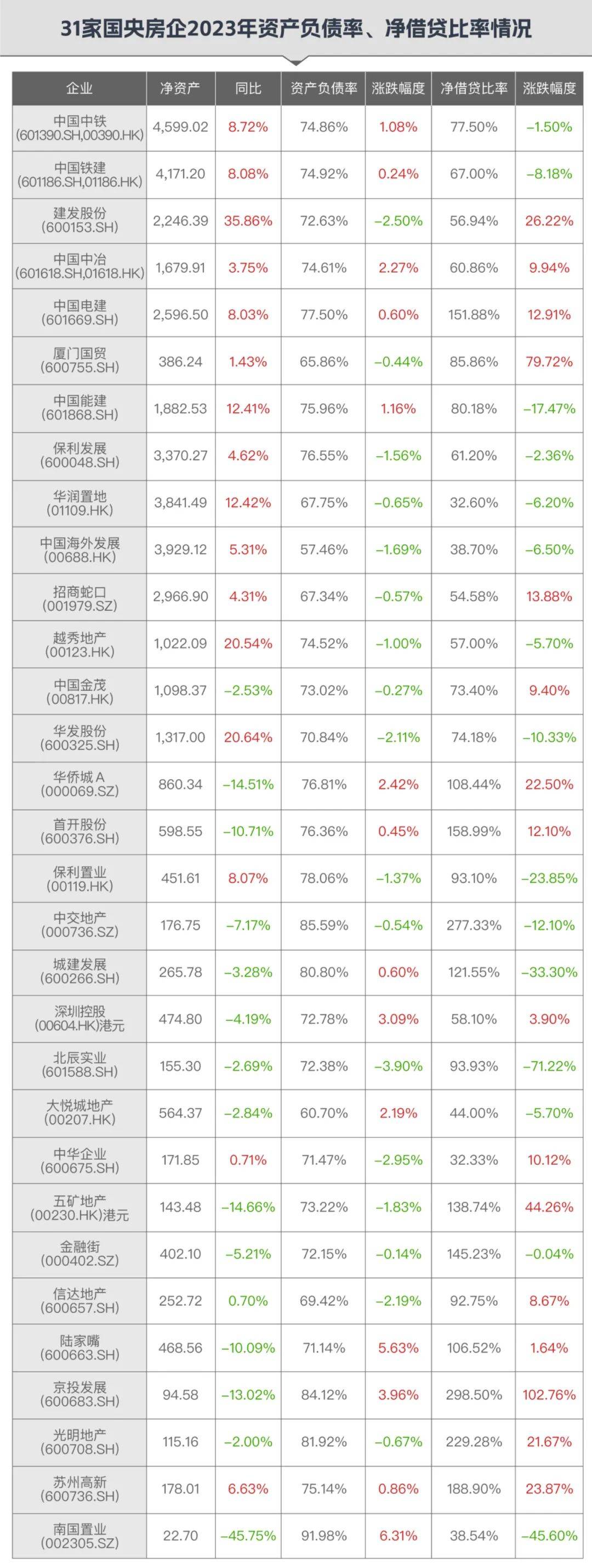 而透過資產、負債、現金等角度,我們可以看到31家國、央房企是否存在逆勢加槓桿、有沒有儲備足夠的現金流等。