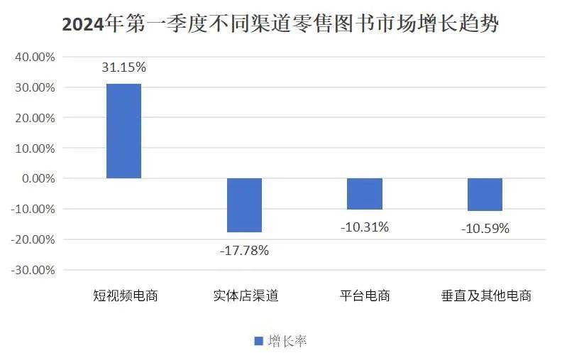 北京開卷公佈的統計數據顯示,2024年第一季度,平台電商下降了10.31%,實體店下降了17.78%,短視頻電商同比增幅高達31.15%。