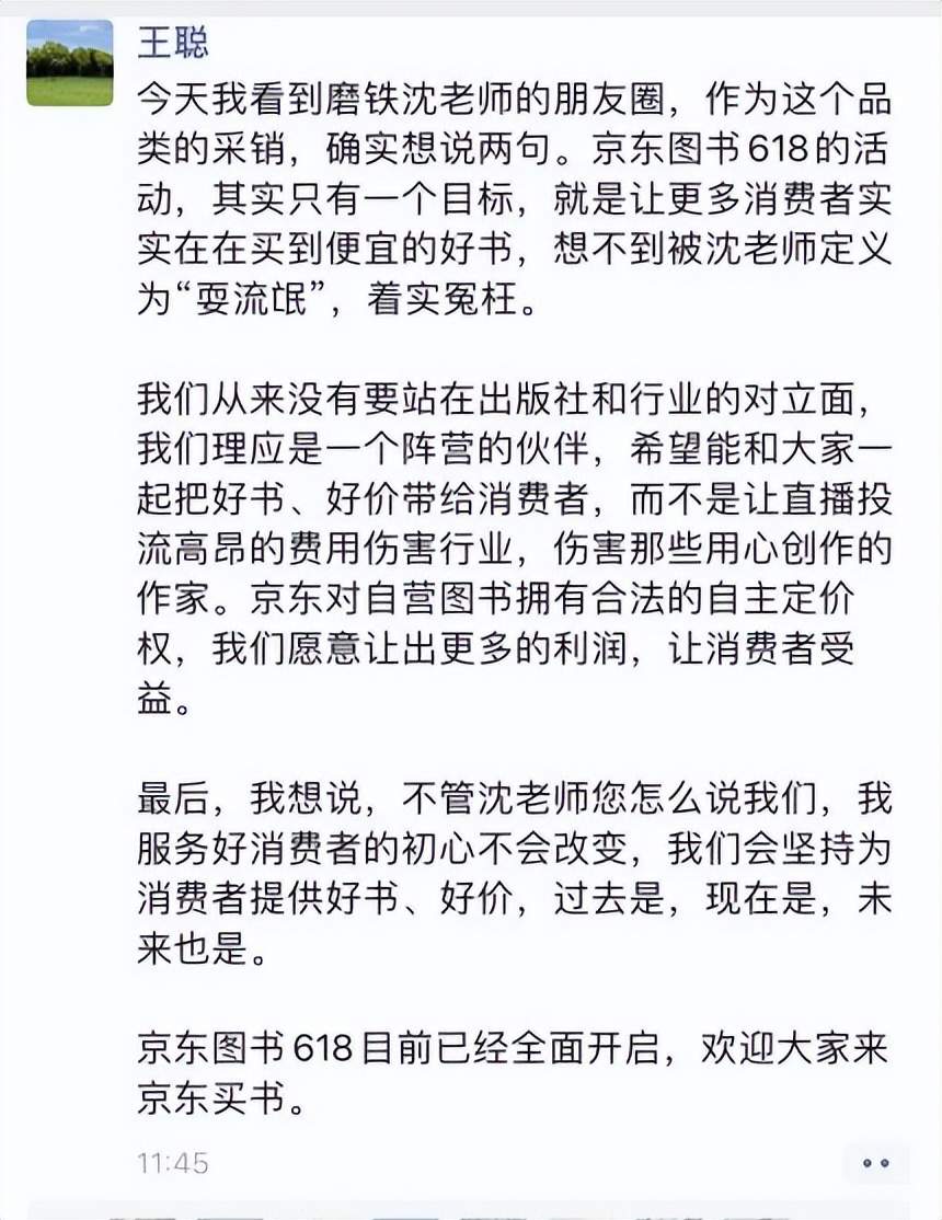 對此,京東圖書採銷負責人在朋友圈回應稱,京東從來沒有要站在出版社和行業的對立面,他們理應是“一個陣營的夥伴”,希望能和大家一起把好書、好價帶給消費者。
