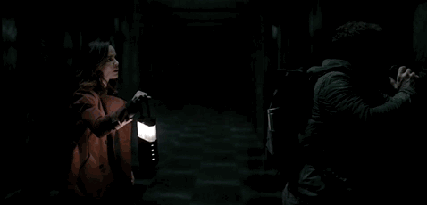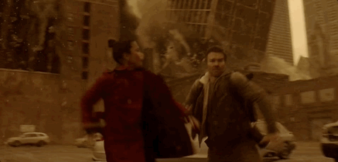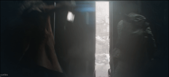 女主情緒崩潰,打開了一扇門衝了出去。這裏的世界,是電影《後天》裏的極寒之地。