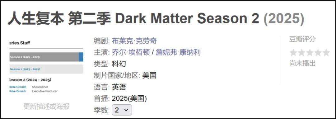 本劇改編自同名小説《人生複本》(Dark Matter)。