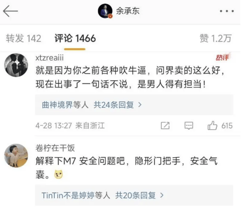 山西運城問界新M7 Plus車禍事件在網絡上引起熱議之後,消費者對於問界的安全性產生了質疑,尤其是問界“引以為傲”的智駕系統(含AEB)是否真如宣傳般那麼智能。其中,在餘承東的微博評論區裏,不少網友提出問界是否存在過度宣傳的情況,以及問界智能駕駛系統的安全情況究竟如何。
