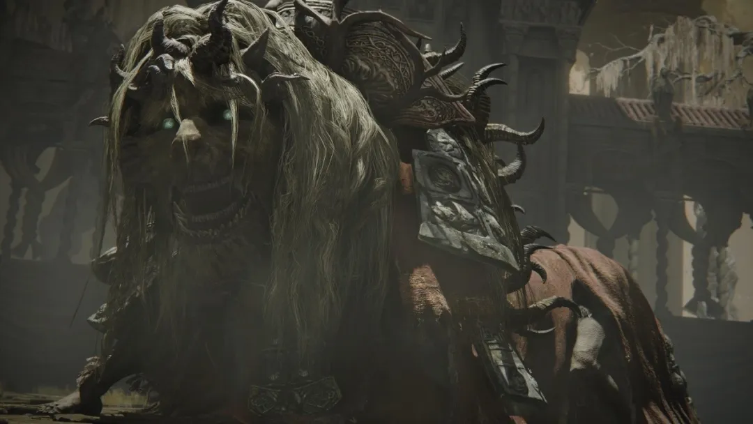 在塔之鎮,我遭遇了預告片裏有着大量戲份的BOSS神獸舞獅,神獸舞獅的過場動畫裏提到了諸如角之獸、塔之子的字眼,其身上也有着明顯的熔爐百相特徵。毫不誇張的説,**神獸舞獅的BOSS戰設計維持,甚至超越了《艾爾登法環》本體中許多BOSS戰的高水準,**和其戰鬥的過程充滿挑戰,又不乏大魄力的動作和招式。