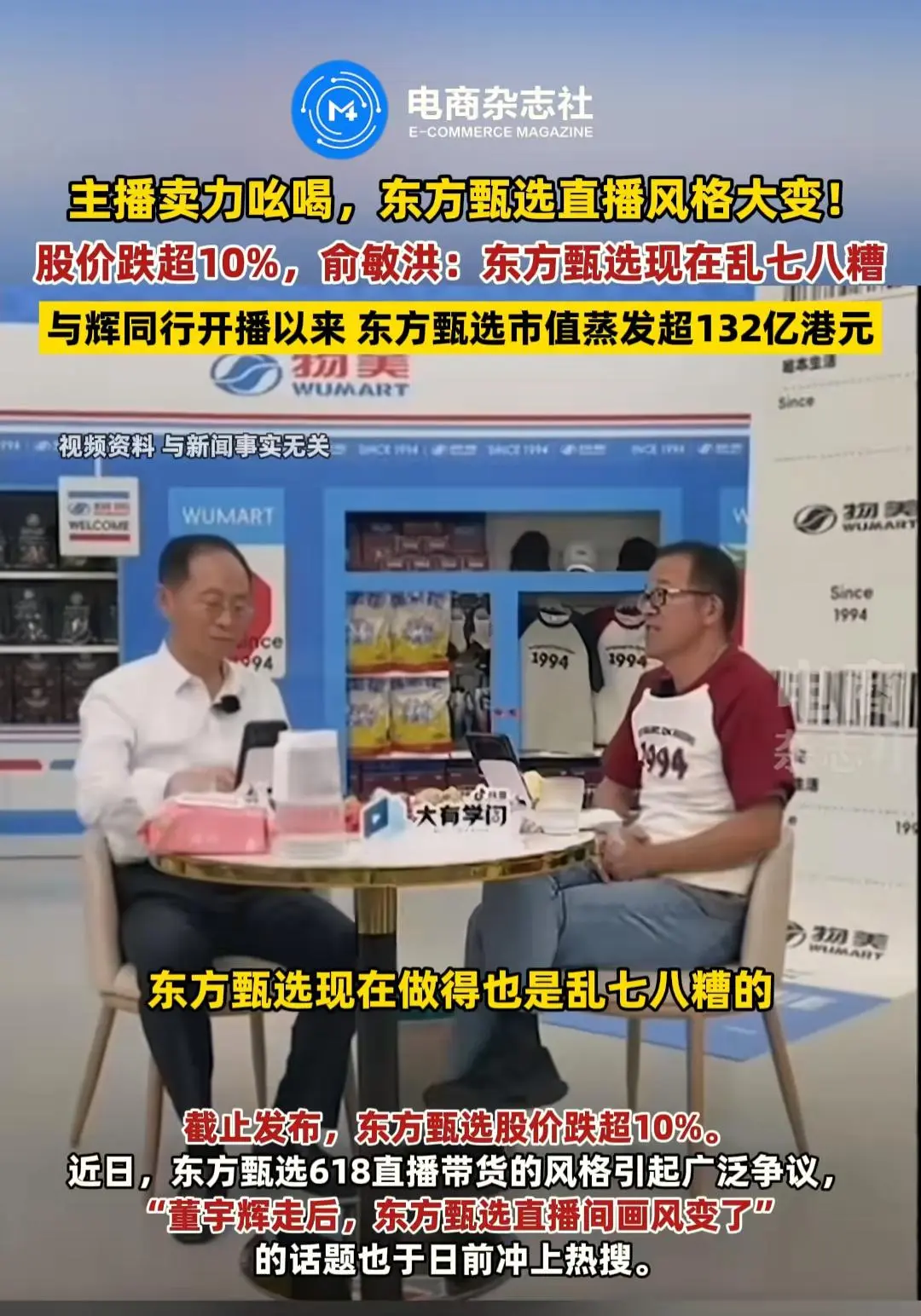 俞敏洪的一句話,直接讓東方甄選的股價三天蒸發30億港元。