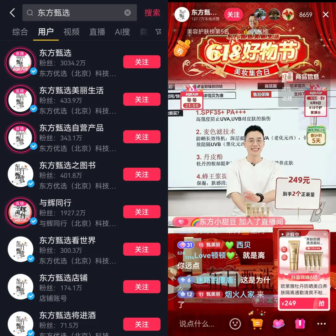 這次風格大變的,是東方甄選旗下的“東方甄選美麗生活”矩陣號,引發爭議的也是其618美妝護膚專場。