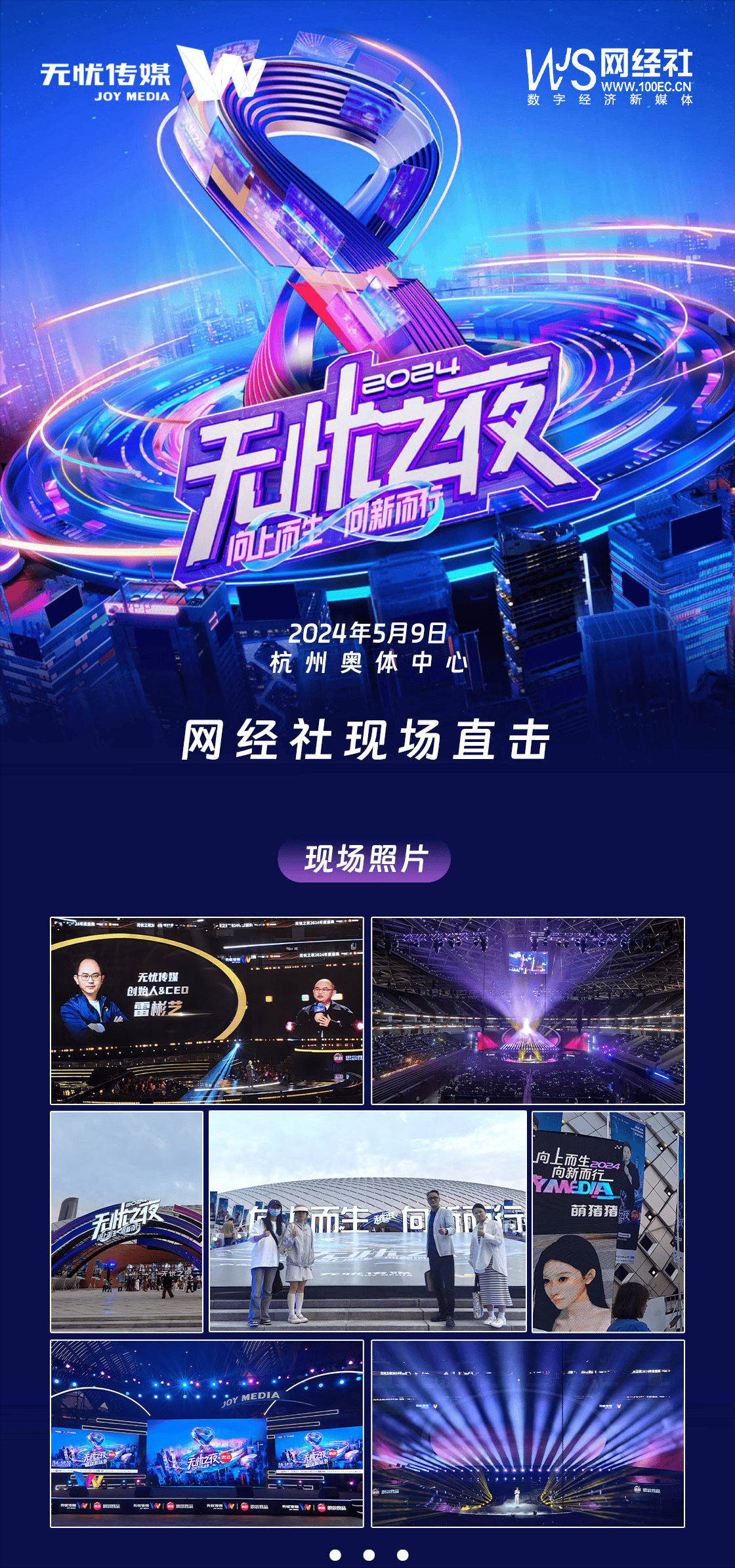 5月5日至9日,無憂之夜2024在杭州奧體中心舉行。本次以“向上而生,向新而行”為主題的“無憂之夜2024”,活動為期五天,涵蓋無憂運動會、無憂超級粉絲節、紅人紅毯秀、年度盛典晚會等多個環節。