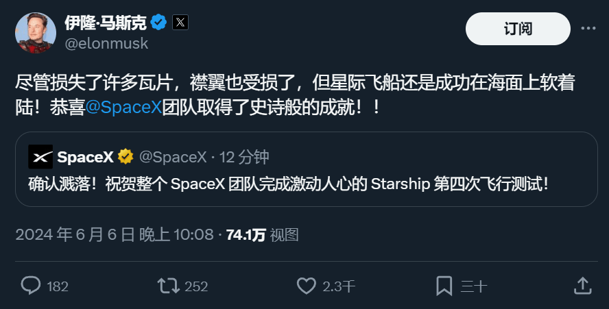 這是星艦第四次發射結束後,馬斯克給出的總結。沒錯,他的星艦,又又又 “ 成功 ” 了。。。