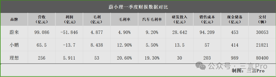 蔚小理Q1財報齊了:蔚來虧損最多,小鵬毛利率提升,理想現金儲備最高_風聞