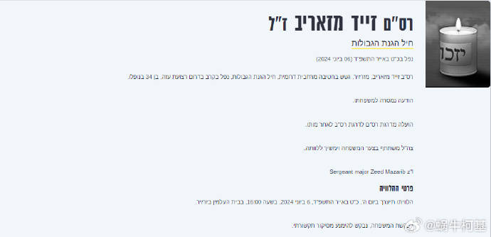 卡桑旅宣佈6號在拉法市以東的戰線後方執行了一次任務,成功擊殺以色列中士“扎伊德·馬紮里布”,並幫助其在以色列軍方搖號成功。