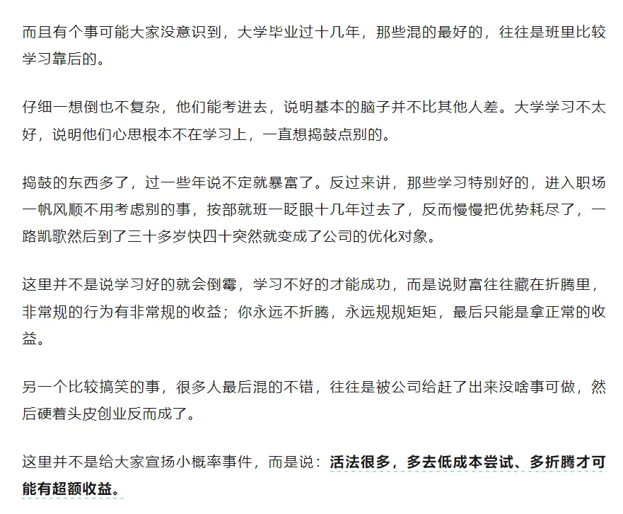昨天看到某個大V發了篇文説“高考也就那樣”,説了不少車軲轆話,核心意思是“現在學歷的重要性真的一般”,“大學畢業後混得好的經常是當時學習不好的”,“高考排位賽讓大部分人沒法受益”,“考不好出路也還有很多”。