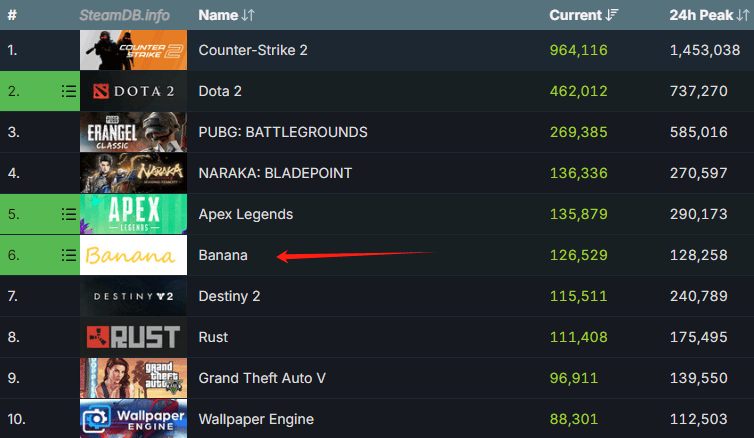 今年4月份上線的《Banana》,僅過去一個多月,便已經在Steam平台累計了4000多條評測,90%的好評率,截止成稿前,這款遊戲的同時在線人數依舊位於平台榜單前十。