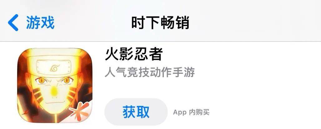 結果我去 App Store 下載的時候,偶然間在暢銷榜上看到了另外一款格格不入的遊戲——火影忍者。