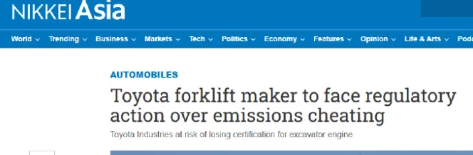 2月20日《豐田叉車製造商將會面臨排放造假的監管行動》