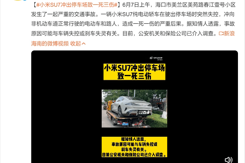 小米SU7事故致死傷,公司回應:加速踏板持續下踩!_風聞