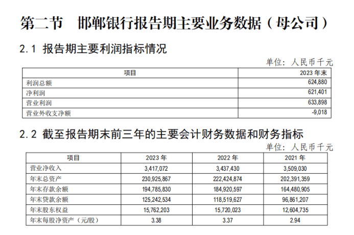 早在年初交易所發佈的邯鄲銀行2024年同業存單發行計劃中,邯鄲銀行就公開了其2023年大致的財務數據,年報麼畢竟經過審計了,披露的信息更多一些罷了。