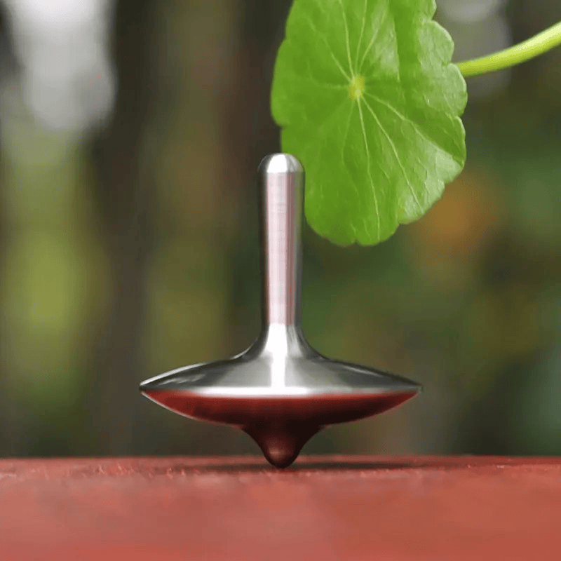 而在手指推力的作用下,高速旋轉的陀螺又會在傾斜後,迅速重新恢復之前的直立姿態,這體現的是陀螺的定軸性。