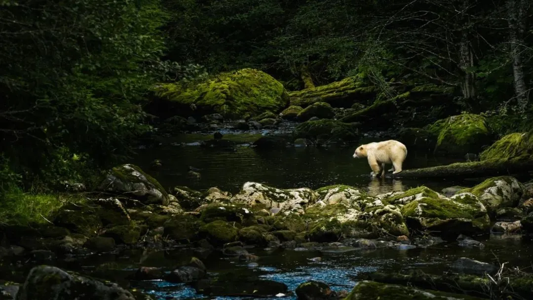 在熊科動物中,還有一種特殊色系的熊,它就是美洲黑熊的亞種之一——生活在加拿大大熊雨林的柯莫德熊(Kermode bear),也叫靈熊(Spirit bear)。