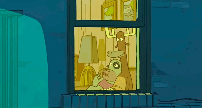 無意間瞥向窗外,發現對面的奶牛與長頸鹿恩愛有加。