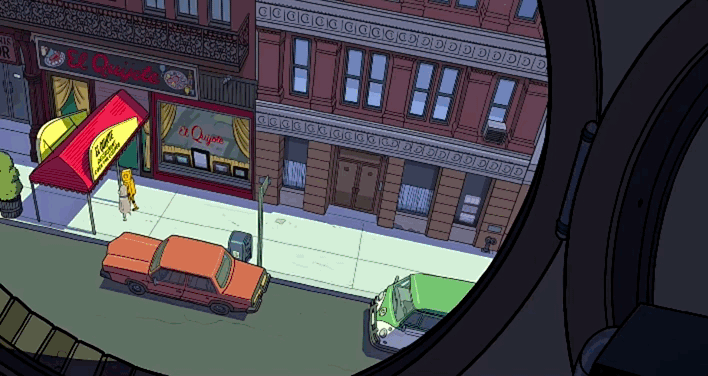 悠閒地坐在長椅上時,乾脆致敬伍迪·艾倫的**《曼哈頓》**。