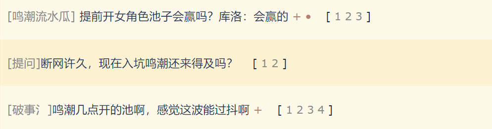 而且隨着遊戲更新,這種找樂子的趨勢也正在不斷放大。比如討論凌陽角色劇情、主線忌炎劇情和PV、安可和秋水人設等問題的槽點;稱自己因官方修復BUG扣除資源的操作而背上「貸款」……前兩天吟霖上線後後,也有玩家討論角色的伴星任務。