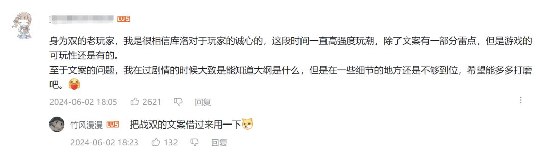 在官方6月2日的致歉下方,也有不少玩家滿意庫洛的行動效率和滑跪態度,並給出了更多的優化修改建議……從這裏來看,玩家其實希望《鳴潮》能持續運營下去,甚至通過庫洛傳統的「打逆風局」操作實現口碑逆轉。