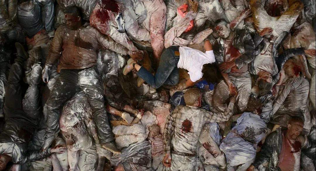 成堆的死屍被像垃圾一樣丟在萬人坑裏……