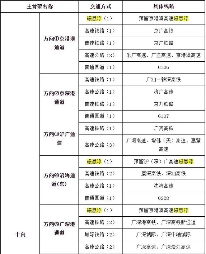其一是在京港澳、廣深港運輸通道上,預留建設京港澳高速磁懸浮列車的建設空間;
