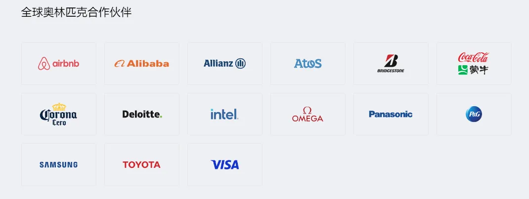 儘管外界對這些企業是否續約存疑,但事實上,目前國際奧委會總共有15家TOP合作伙伴,規模創歷史新高:愛彼迎(住宿)、阿里巴巴(電商)、安聯(保險)、源訊(信息技術)、普利司通(輪胎)、可口可樂/蒙牛(非酒精飲料)、德勤(商業諮詢)、英特爾(人工智能)、歐米茄(鐘錶)、松下(音頻/電視/視頻設備)、寶潔(個護)、三星(手機)、豐田(汽車)、Visa(支付服務),以及今年剛加入的啤酒贊助商百威英博。過去四年中,這些TOP合作伙伴為國際奧委會貢獻了約23億美元的收入,僅豐田一家就在其合同期內貢獻了8.75億美元。而過去10年裏,國際奧委會失去了3個TOP贊助商(陶氏、通用電氣和麥當勞)。