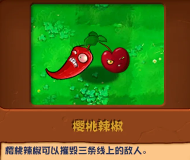 像這個櫻桃辣椒就相當於同時使用三個火爆辣椒,性價比不言而喻,原版櫻桃炸彈的爆炸範圍是3X3,與火爆辣椒“雜交”後威力大增,即使是在雜交版殭屍數量激增的情況下,也能有效清屏。