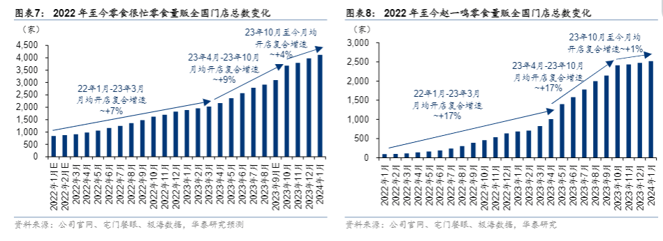 於同期,不管是受環境影響選擇創業的新手,還是擁有優質點位的老玩家,都在尋找合適的品牌。零食很忙憑藉更大的規模體量,打造了整合優質供應鏈資源的能力,為加盟商們提供了有競爭力的商品和成熟的管理模式,從而實現馬太效應,在高基數下仍維持較高月均複合增速。